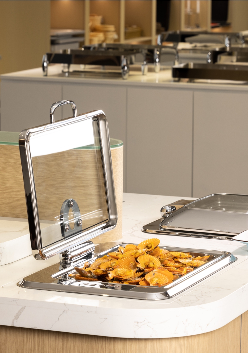 Como uma referência de inovação em equipamentos comerciais de catering, a SunNex Kasa Series 8.5L embutida Buffet Chafer mescla perfeitamente a durabilidade de nível industrial com funcionalidade de ponta, fornecendo soluções excepcionais para ambientes comerciais de serviço comercial de alta demanda.