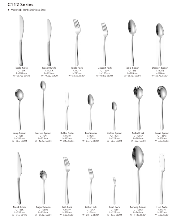 A série C112 é habilmente fabricada em aço inoxidável 18/8 de alta qualidade.