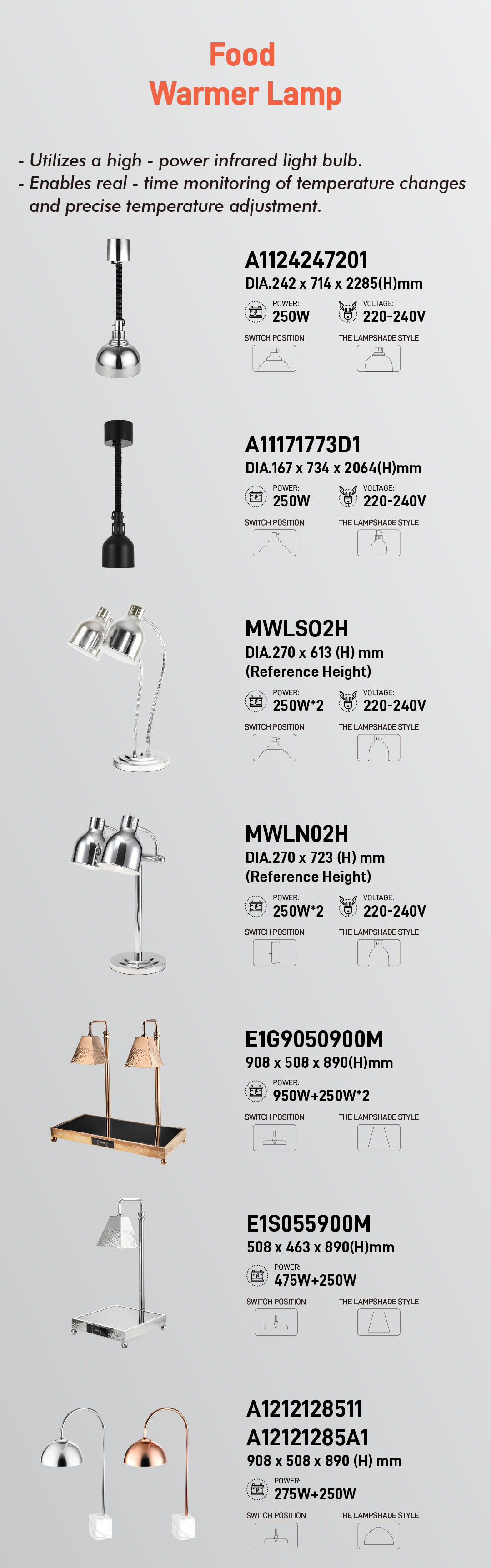 nossa mais recente série de lâmpadas para aquecer alimentos - projetada para garantir que seus pratos exclusivos cheguem à mesa exatamente como pretendido: quentes, frescos e visualmente deslumbrantes.