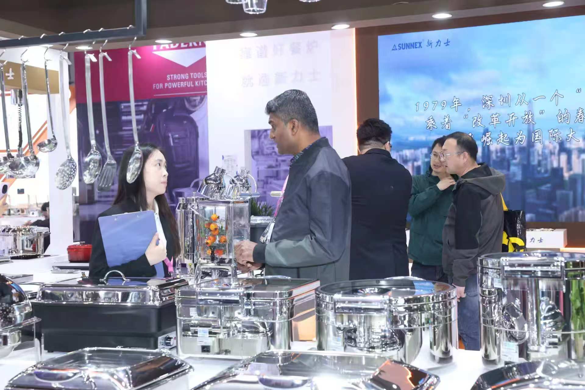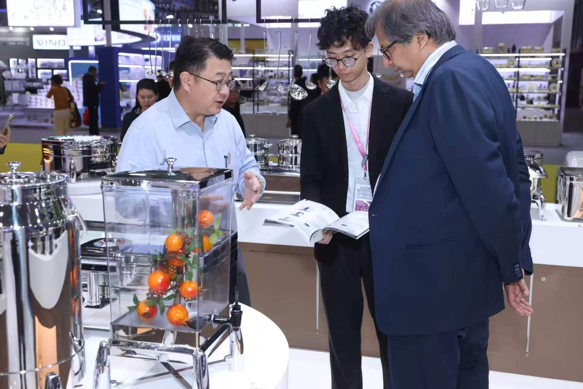 Durante a exposição, a marca se concentrou em exibir os mais vendidos, incluindo rechauds secos sem água, panelas gastronorm clássicas de aço inoxidável, urnas de leite da série Verona, dispensadores de bebidas com tubo de gelo e outros produtos novos, atendendo às diversas necessidades de hotéis de alto padrão, marcas de redes de catering e cantinas de funcionários. Nosso estande recebeu visitas contínuas de compradores profissionais estrangeiros do Oriente Médio, África, Europa, América e Sudeste Asiático. Nossa equipe profissional forneceu apresentações individuais de produtos e suporte de soluções personalizadas para discussões de cooperação aprofundadas.